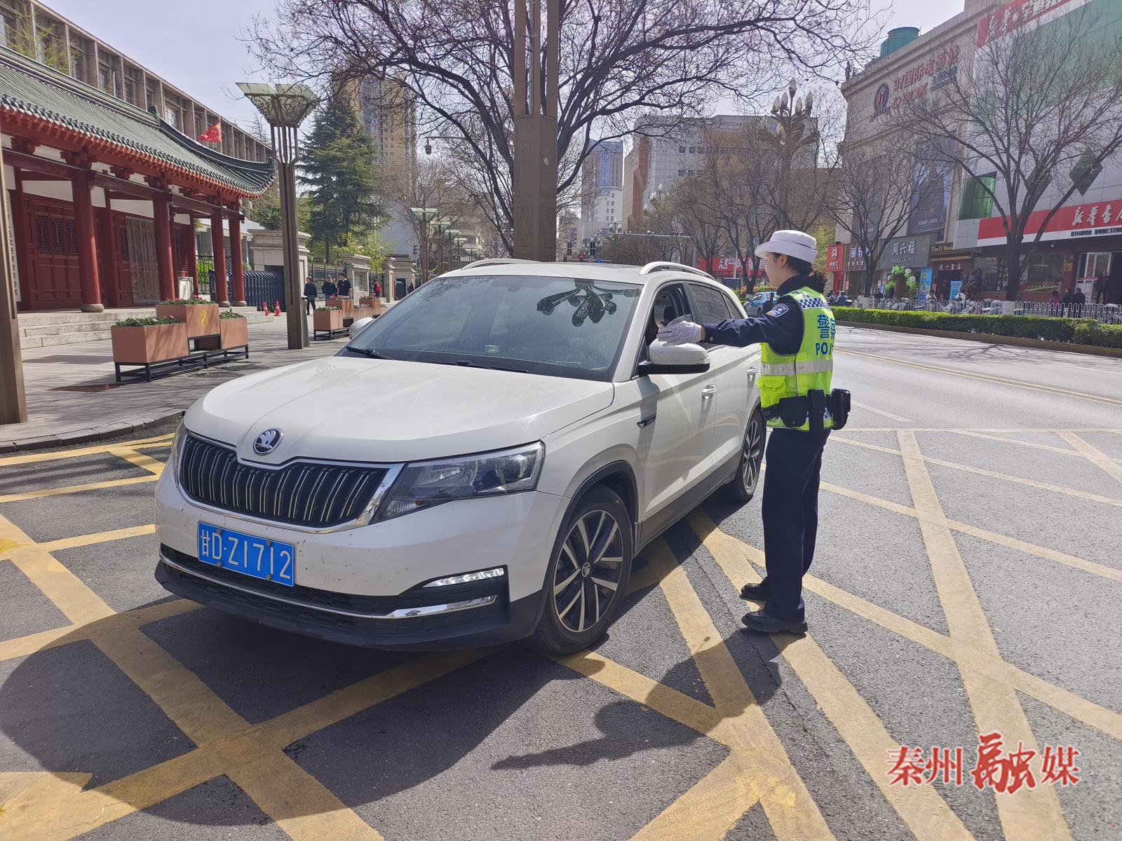 4月5日上午,记者在秦州城区各主要交通路口、游客集中区域看到,均有交警、辅警在现场执勤。他们指挥着来自各地的车辆有序行驶,引导着行人快速通过马路,确保能在第一时间解决游客市民遇到的各类交通问题。