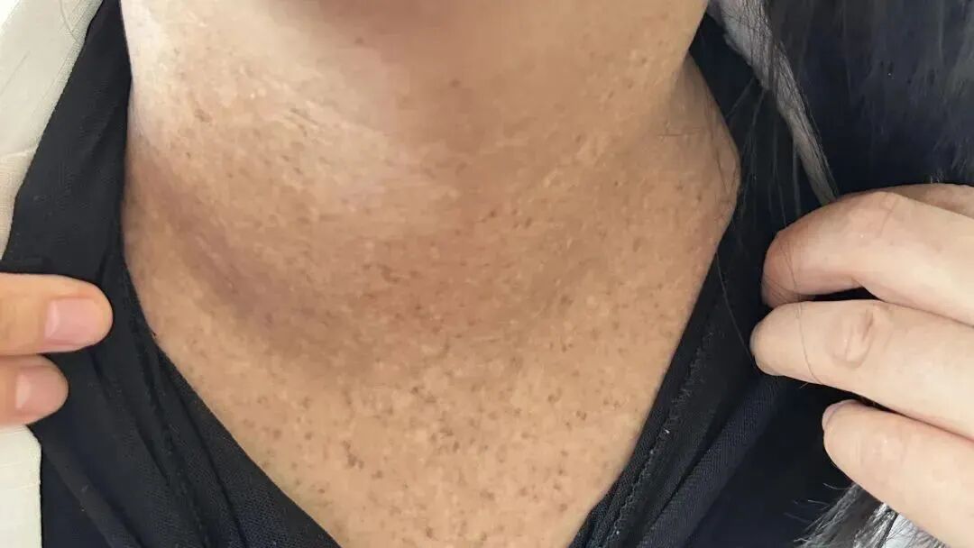 一年前,陈女士照镜子时偶然发现自己脖子似乎“变黑了”,以为是没做好防晒,她起初并没放在心上。可渐渐地,陈女士不仅脖子越来越黑,长出了黑斑,这黑斑还蔓延至四肢,手掌、脚底也莫名长出粗糙硬茧,稍微剧烈活动就气短、全身乏力,她这才赶到医院就诊。