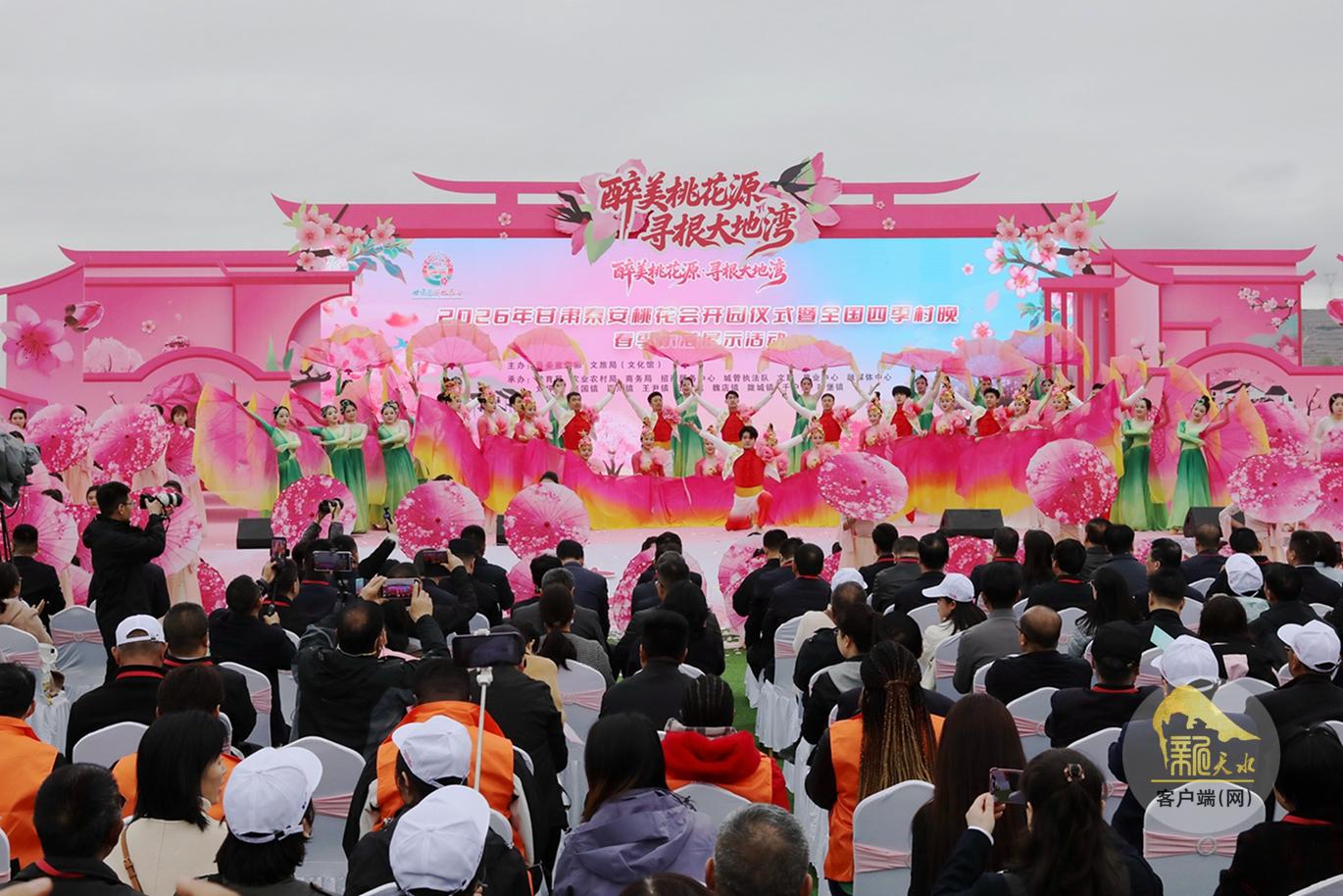 上午10时,2026年甘肃秦安桃花会暨全国四季村晚春季示范展示活动如约启幕。活动现场,春意盎然,人气满满。开场舞《锦绣桃乡》舞姿灵动,拉开活动序幕;文旅资源推介娓娓道来,串联起大地湾远古文明、非遗民俗和田园风光,诉说秦安的历史底蕴与发展底气。文艺演出精彩纷呈:舞蹈演绎桃乡盛景,快板点赞本土风物,武术彰显秦风古韵,非遗节目传承文化根脉,情景歌舞饱含春日深情,搭配精彩杂技表演,台上台下掌声不断。全国四季村晚春季示范展示活动同步登场,为这场春日盛会更添烟火气与群众温度。