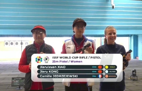 射击世界杯西班牙站在格拉纳达继续进行。女子25米手枪比赛,中国选手肖嘉芮萱以资格赛头名晋级决赛,最终经过两轮加赛战胜队友孔婕如夺得冠军,孔婕如获得亚军。
