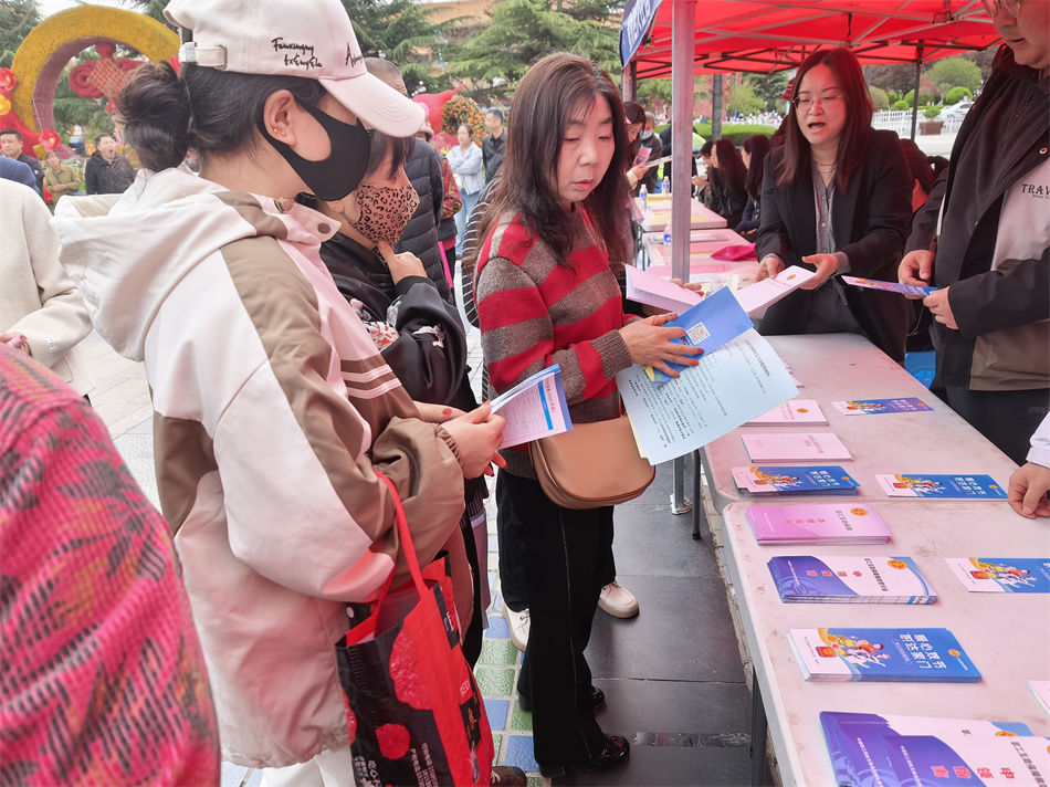 新天水讯 据秦州区融媒体中心消息 4月10日,秦州区中城街道重新街社区组织居民在龙城广场参加农民工法治宣传教育活动,将法律知识和维权服务送到农民工身边,为他们的务工生活筑牢法治保障。