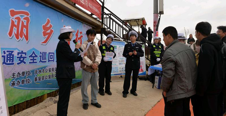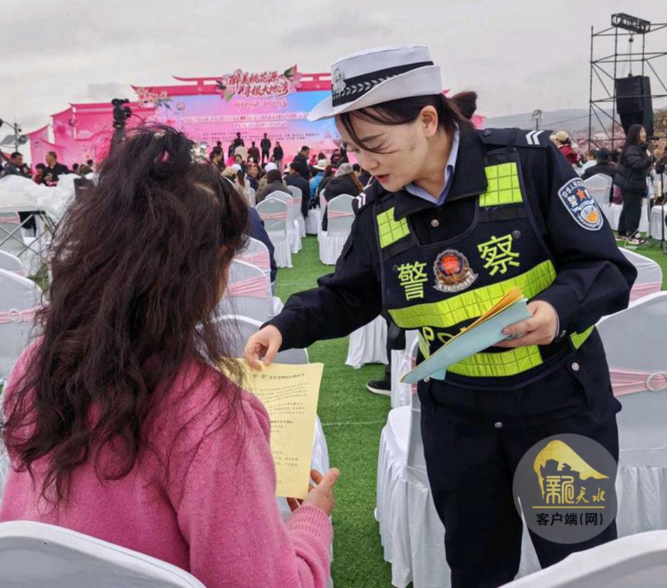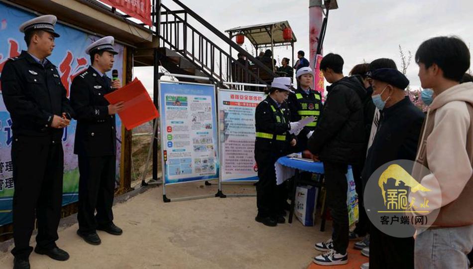 新天水讯【天水融媒通讯员 付芸芸】4月8日,秦安县刘坪镇千亩桃林竞相绽放,一年一度的“桃花会”如约而至。天水市公安局交通管理支队联合秦安县公安局交通管理大队借势发力,将“美丽乡村行”宣传车开进桃花会现场,借“花”开讲,以“花”话安全。