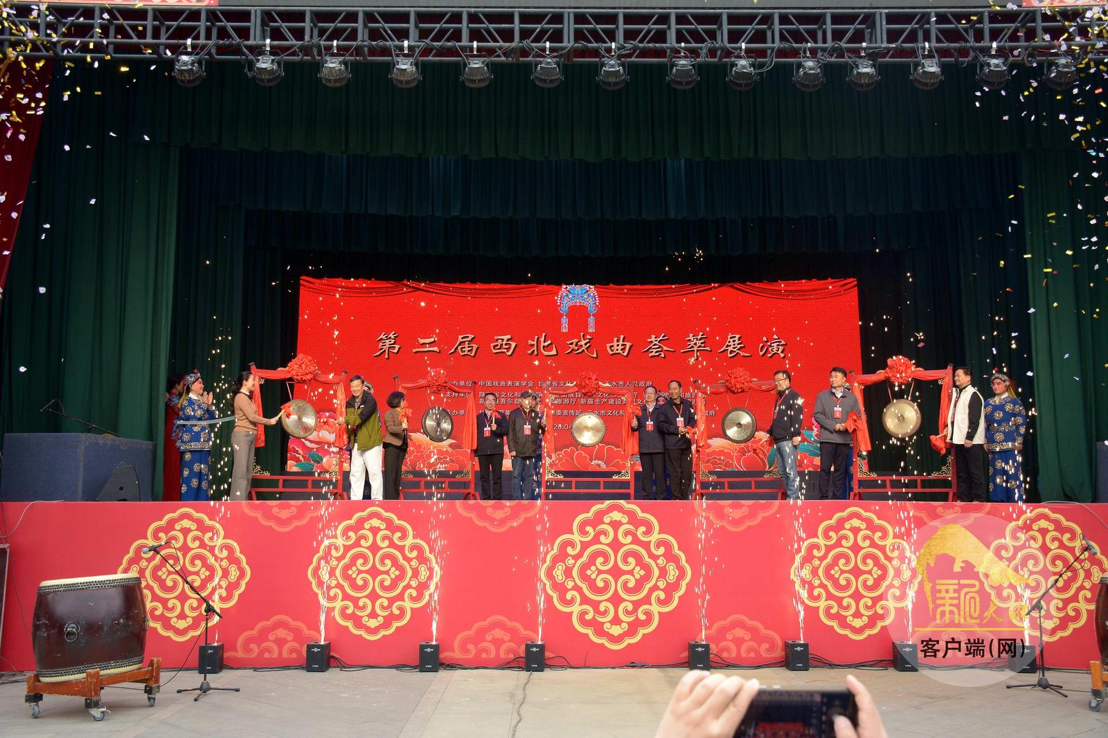 中国戏曲表演学会会长黎继德,甘肃省文化和旅游厅一级巡视员吕兴来,甘肃省文联党组成员、副主席王正茂,河北省文联副主席贾吉庆,湖南省文联副主席肖笑波,天水市委常委、宣传部部长王文东,天水市委常委、秦州区委书记康泰来等出席活动,并为第二届“西北戏曲荟萃展演”鸣锣开场。陕西、青海、新疆生产建设兵团等文旅部门有关处室和艺术院团的负责人参加启动仪式。