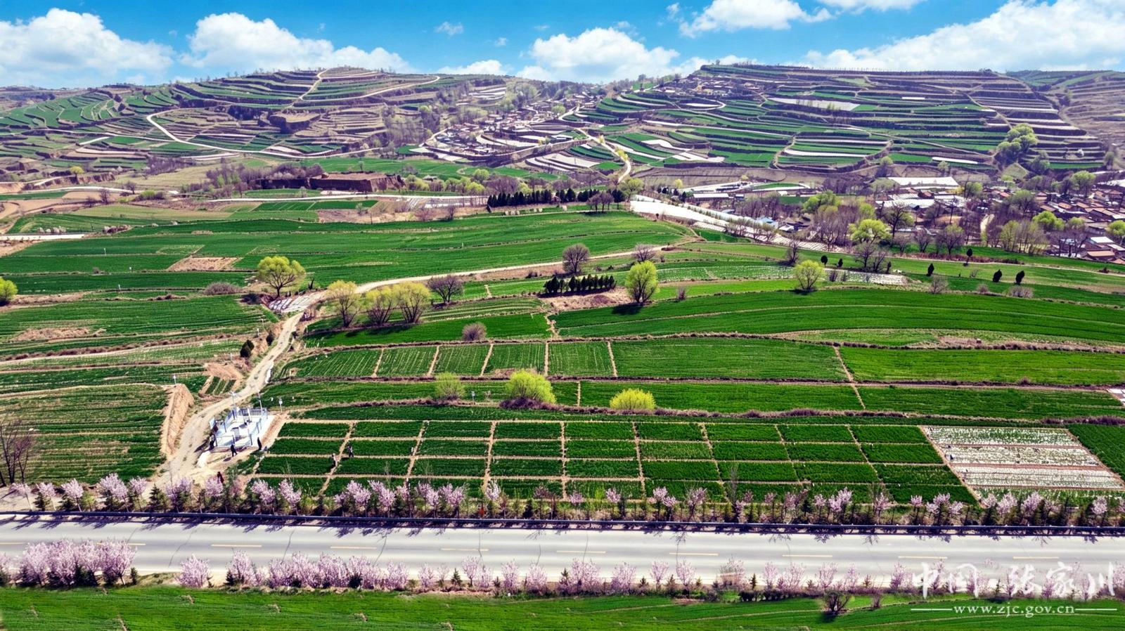 新天水讯 据张家川县融媒体中心消息 春回大地,沃野铺翠。步入四月,张家川县田间地头处处涌动着勃勃生机。全县20.4万亩冬小麦自西向东,陆续迎来返青拔节的黄金时节。在梁山镇万亩高山小麦良种繁育现代农业科技示范基地,连片麦田挣脱冬日的沉寂,披上了一层鲜亮的绿装。清风徐来,麦浪层层翻滚,株株麦苗挺拔茁壮,勾勒出一幅五谷丰登的壮美春耕画卷,预示着今年夏粮丰收的良好态势。