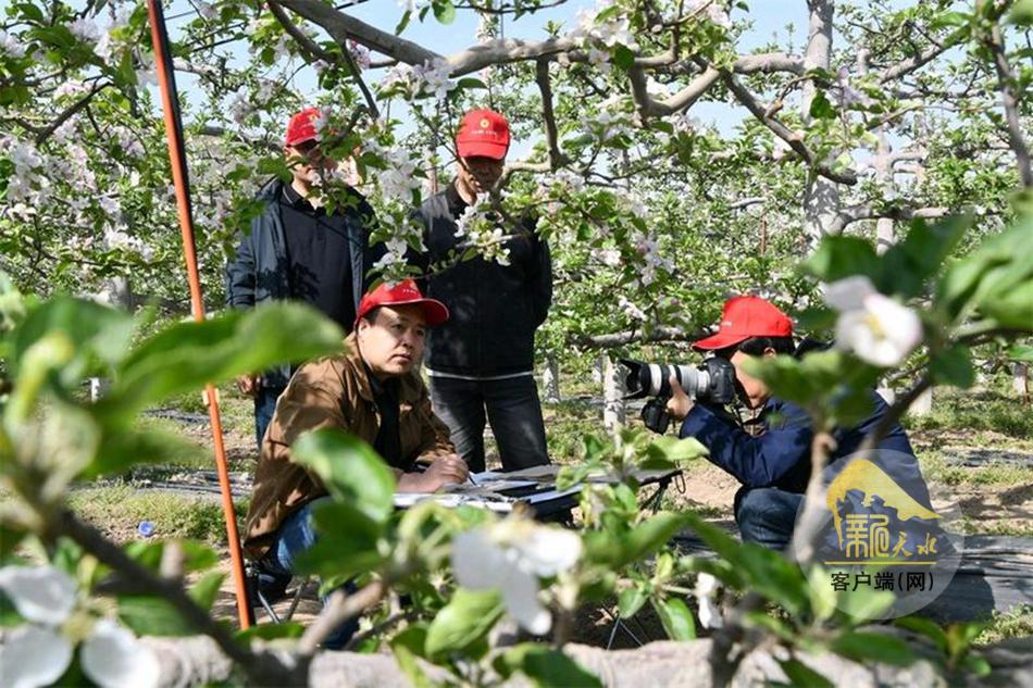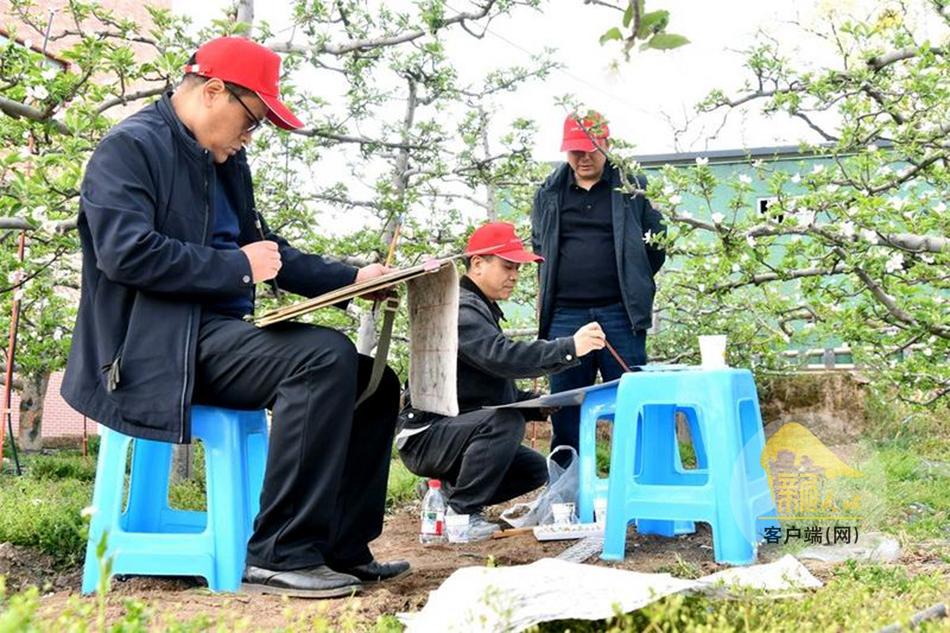 采风活动中,摄影爱好者穿梭于花海之间,用镜头聚焦苹果花的娇艳、田园的秀美,定格春日灵动瞬间与参与者的昂扬风貌;短视频创作者以镜头为笔,以花海为卷,记录麦积发展变迁、醉人田园美景与花牛苹果产业的蓬勃生机;书画家们现场挥毫泼墨,笔走龙蛇、丹青流转,用笔墨丹青描绘花牛苹果花开的盛景、麦积乡村的秀美风貌;文学爱好者们则漫步花海、驻足沉思,用文字描摹春日盛景、书写乡村振兴的动人故事,写下“花牛苹果又大又红”及其他蕴含美好祝愿的作品,传递着对家乡的热爱与祝福,让人真切感受到麦积的生态之美、产业之兴、人文之韵。“南山花牛苹果基地春日风光格外秀美,苹果花漫山绽放,仿佛已然看到了硕果满枝,创作灵感十足。这里自然景观与特色产业相得益彰,是绝佳的绘画素材,也让我真切感受到麦积区乡村振兴的崭新变化。”麦积区美协副主席霍彦斌说。
