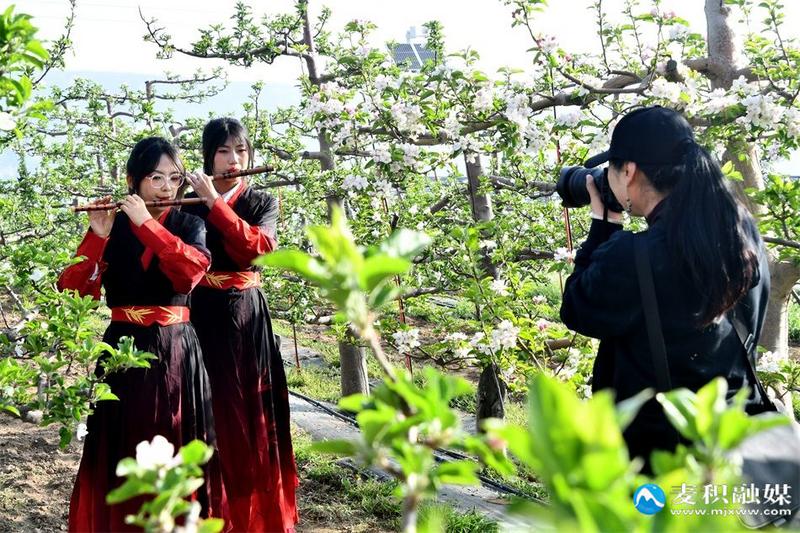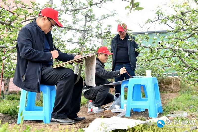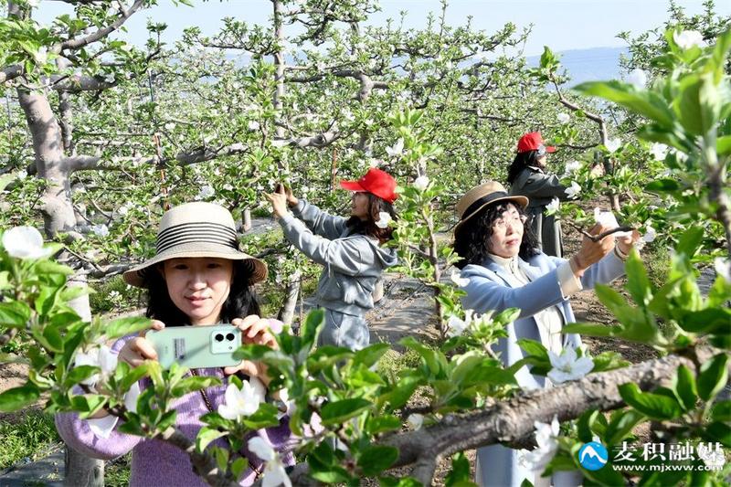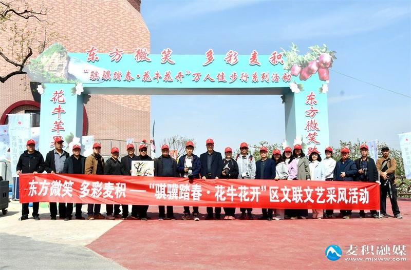 新天水讯 据麦积区融媒体中心消息 丹青溢彩,花海飘香。4月12日,麦积区文联组织区摄影家协会、书法家协会、美术家协会、作家协会部分会员及文艺志愿者,深入南山花牛苹果基地,开展“东方微笑·多彩麦积”——“骐骥踏春·花牛花开”文艺采风活动。文艺工作者们以笔墨镜头定格田园之美,共赴一场文旅农康深度融合的春日之约。