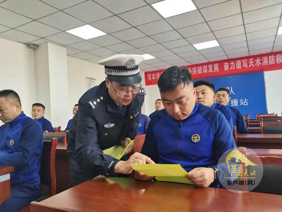 新天水讯 4月13日,张家川县公安局交通管理大队组织宣传民警深入张家川县消防救援大队开展交通安全宣讲活动,以进一步提升消防救援车辆驾驶人交通安全意识。