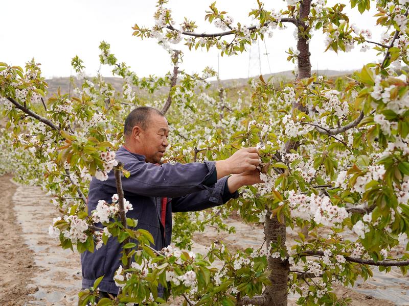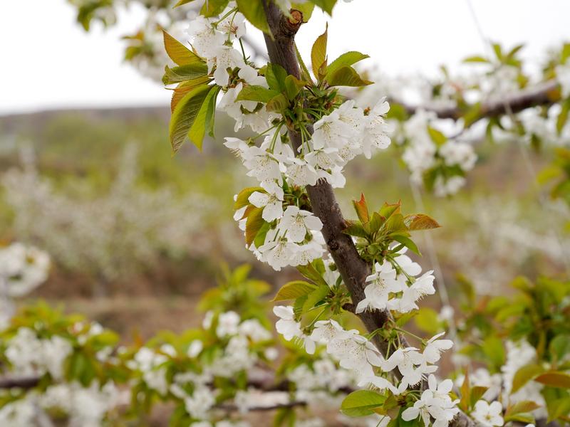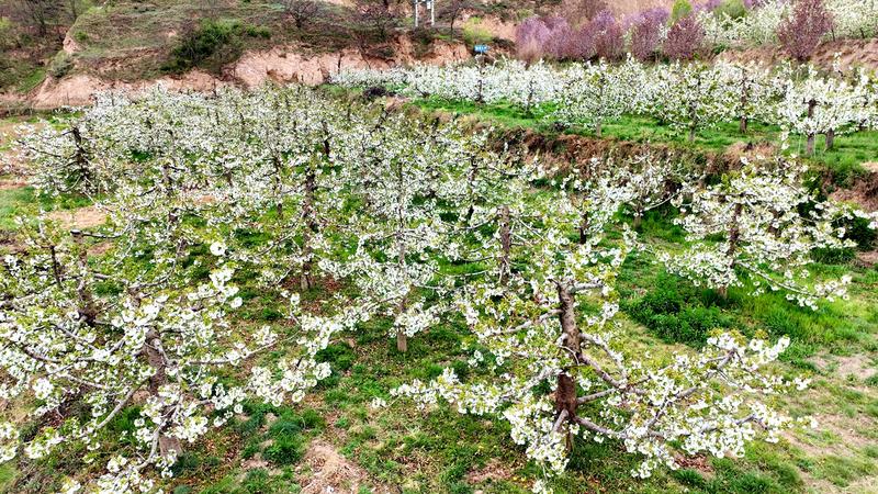 “咱们这儿海拔高、温差大、光照足,种出来的樱桃色泽艳丽、果实饱满、肉肥味美。”正在地里忙活的嘴头村村民管元海种植了十亩樱桃,眼下正值开花期。他告诉记者,嘴头乡产出的樱桃皮薄肉厚、口感甘甜,深受消费者青睐。“大概到六月份就全面成熟上市了,欢迎大家前来采购。”