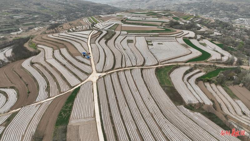 走进汪川镇建生种植家庭农场千亩种植基地,轰鸣的机械声打破了田野的宁静。拖拉机牵引着覆膜播种一体机匀速前行,一次性完成旋耕、施肥、起垄、覆膜、播种等多道工序,白色地膜随地形在田埂间勾勒出整齐的曲线,如同为沃野披上银纱。