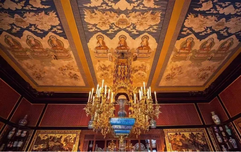 枫丹白露宫中国馆装饰天花板的缂丝佛画像