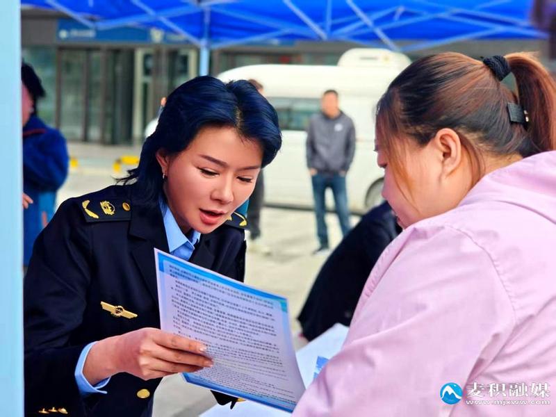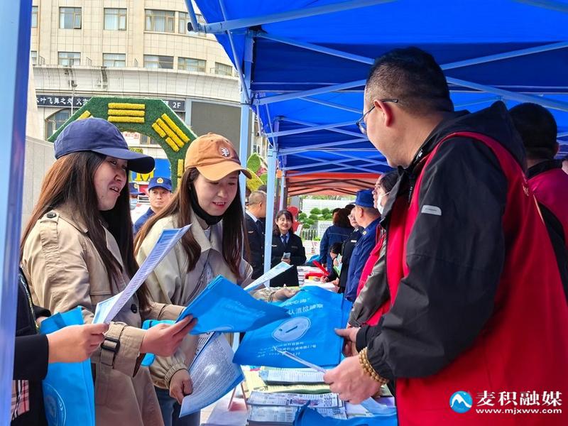 新天水讯 据麦积区融媒体中心消息 国家安全是安邦定国的重要基石,是人民安居乐业的根本保障,与每个人的生活息息相关。4月15日,麦积区在天水火车站站前广场组织开展第十一个“4·15”全民国家安全教育日集中宣传教育活动。今年活动以“统筹发展和安全 护航‘十五五’新征程”为主题,通过一系列贴近群众、形式多样的宣传方式,向广大市民普及国家安全知识。