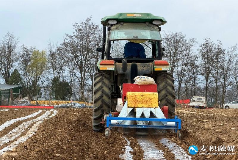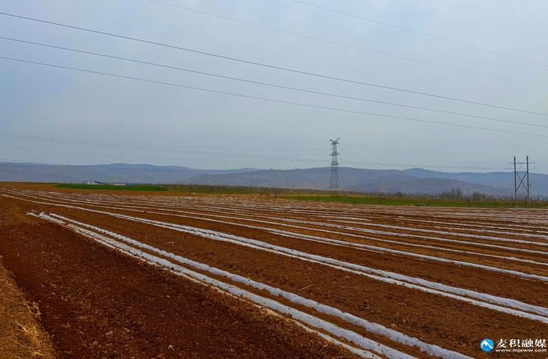 新天水讯 据麦积区融媒体中心消息 暮春时节,麦积区花牛镇的广袤田野间暖意融融、生机勃发,田间地头一派繁忙有序的春耕景象。覆膜机在无垠田畴上来回穿梭作业,银白色地膜顺着田垄缓缓铺展延伸,在春日和煦暖阳的映照下泛着粼粼“波光”。田垄之间,农户们俯身蹲坐,娴熟地开展压土、整边、查漏等各项田间作业,一幅紧扣“藏粮于地、藏粮于技”战略的生动春耕画卷,在这片孕育无限希望的田野上徐徐铺展。