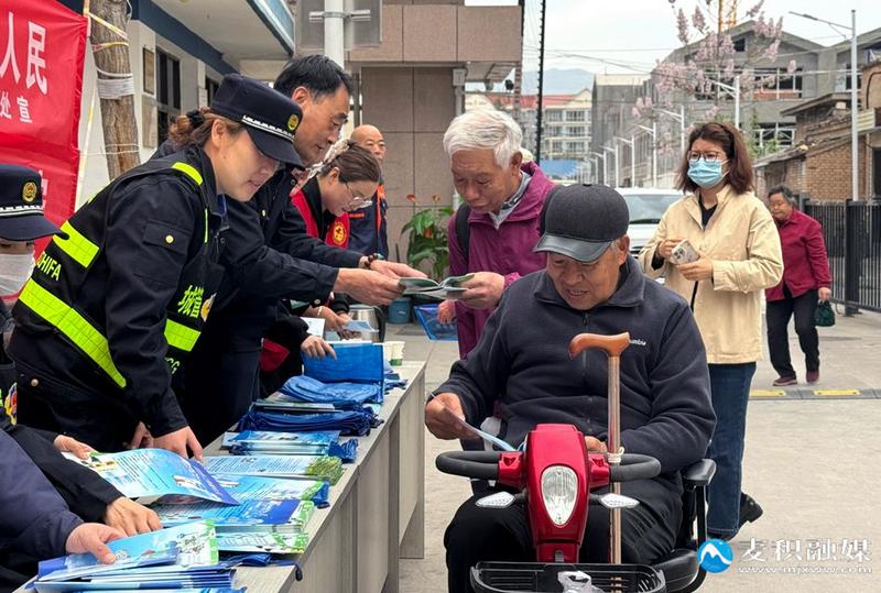 新天水讯 据麦积区融媒体中心消息 4月15日,在第十一个全民国家安全教育日到来之际,为深入贯彻总体国家安全观,切实增强全民国家安全意识与素养,夯实以新安全格局保障新发展格局的社会基础,麦积区桥南街道综治中心联合陇林社区居委会、一勘院31号基地、区应急管理局、区综合执法局,在一勘院小区集中开展全民国家安全教育日宣传活动。活动通过集中宣讲、入户走访等形式,推动国家安全理念走进千家万户,切实增强辖区群众的国家安全意识。