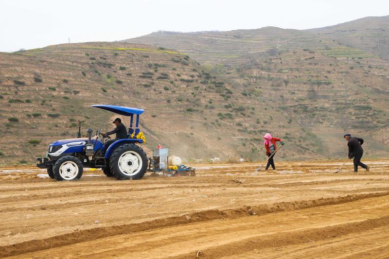 新天水讯 据武山县融媒体中心消息 时下正值春耕生产的关键期,在武山县城关镇的北山梯田里,大型机械在来回穿梭,铁犁翻起黝黑湿润的新土;覆膜机匀速前行,银白的地膜如缎带般连片铺展,为大地披上“春装”。群众俯身劳作,弯腰培土,一幅生机盎然的春耕画卷正徐徐铺展。