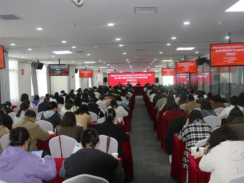新天水讯 据秦州区融媒体中心消息 为切实增强社区党组织书记和社区工作者政治素质和履职能力,全面提升社区工作者队伍专业化、职业化水平,4月14日,由区委社会工作部联合区委组织部举办的全区2026年社区党组织书记和社区工作者能力提升暨职业资格考试考前培训班正式开班。区委组织部、区委社会工作部相关负责人参加开班仪式。全区7个街道和玉泉镇所属48个社区的党组织书记、社区工作者共计180余人参加培训。