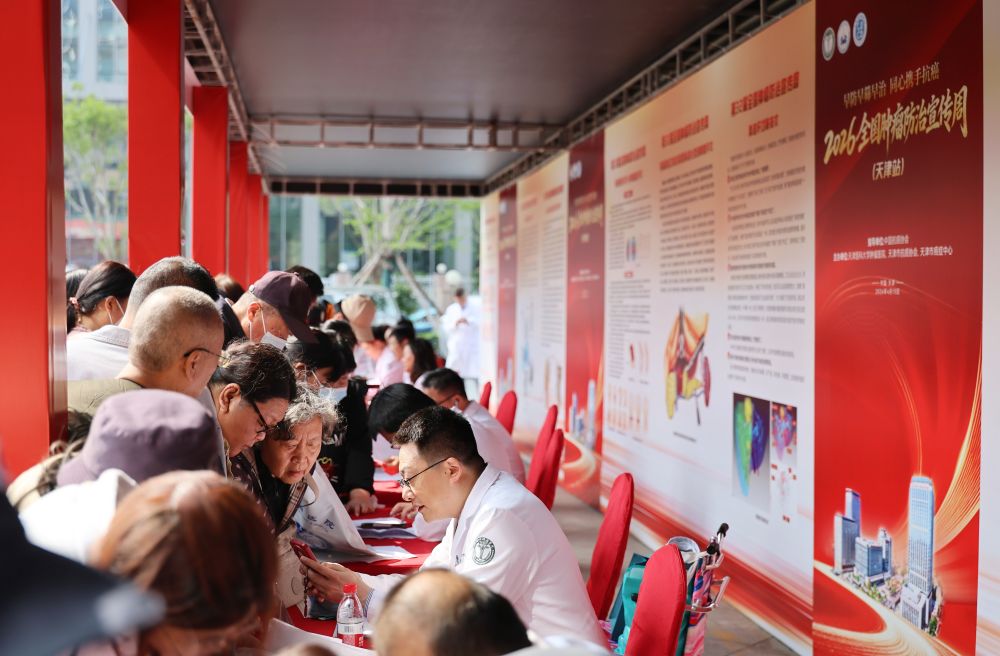 4月15日,第32届全国肿瘤防治宣传周(天津站)启动仪式在天津医科大学肿瘤医院举行。肿瘤专家在活动现场为群众提供健康咨询服务。新华社记者 李然 摄
