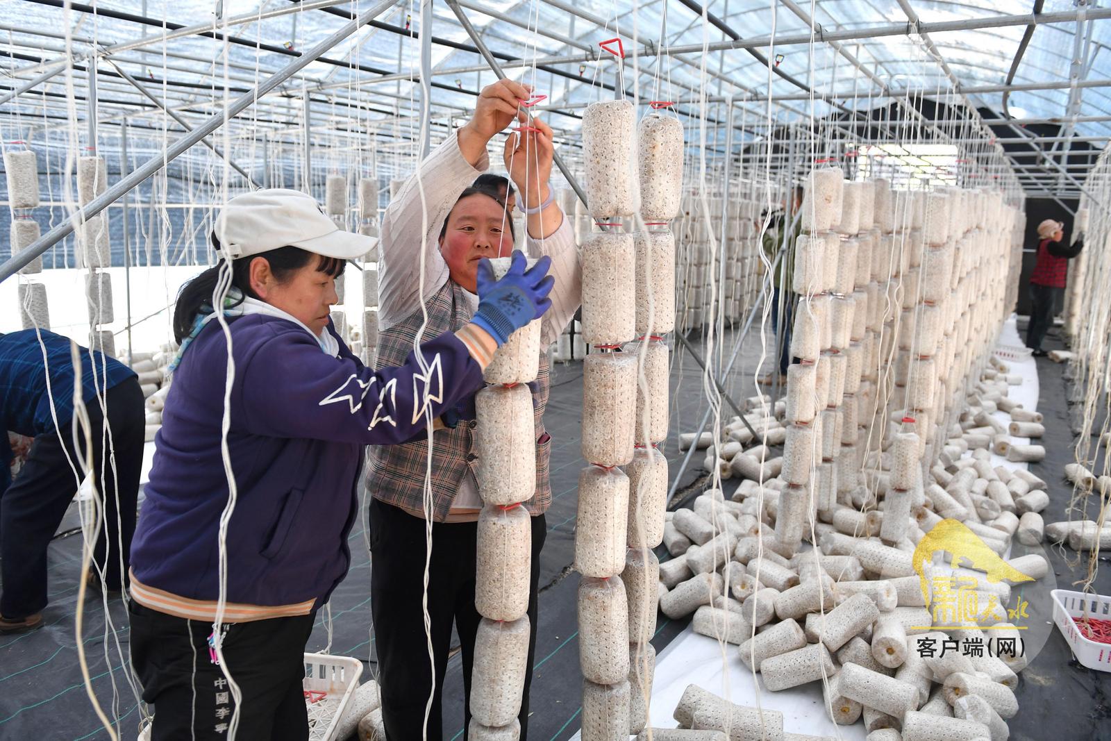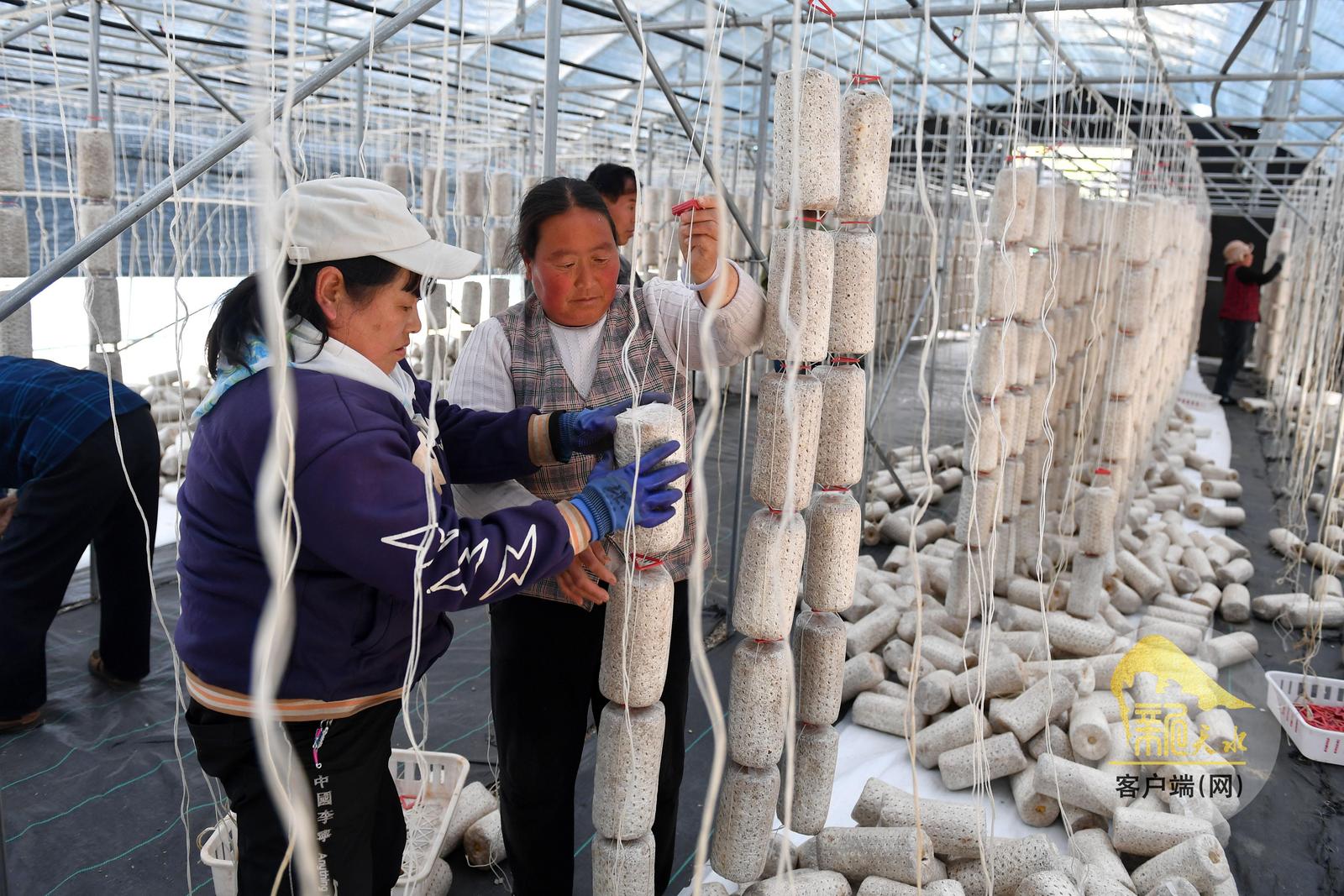 春耕正当时,清水县白沙镇赵沟村食用菌标准化种植基地内一派繁忙景象,村民们正抢抓时令,忙着在大棚里悬挂木耳菌棒。