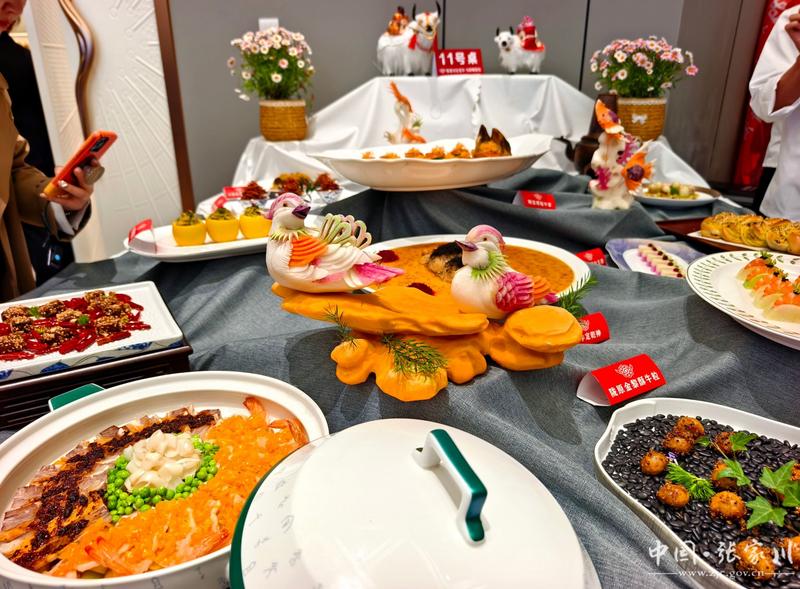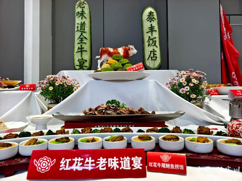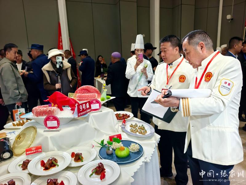 “我们带来的这道霸王牛头,选用张家川红花牛的头肉,经过8个小时的文火慢炖,配上秘制调料,入口即化、肥而不腻。”来自兰州东方宫的厨师长一边忙碌一边向记者介绍。赛场上,煎、炒、烹、炸、蒸、煮、烤等技艺轮番上阵,各参赛团队围绕张家川红花牛这一核心食材,创意研发出红花牛至尊宴、瑞牛呈祥宴、红韵臻牛宴、金牛报春宴等特色宴席,推出霸王牛头、黑松露煨牛尾、鲍汁扣牛窝骨、茶香熏牛排、非遗牛杂等百余道精品菜肴。一道道菜品既传承了传统风味,又融入现代创新表达,让现场观众大饱眼福和口福。