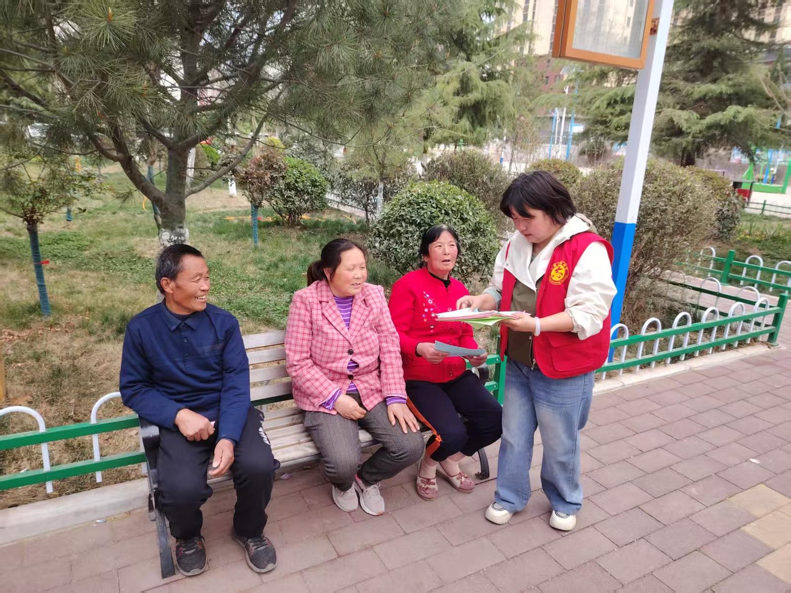 新天水讯 据秦州区融媒体中心消息 近日,秦州区天水郡街道西十里社区安监员,志愿者走进小区,在秀金元小区开展交通安全主题宣传活动,与居民面对面宣讲安全知识。