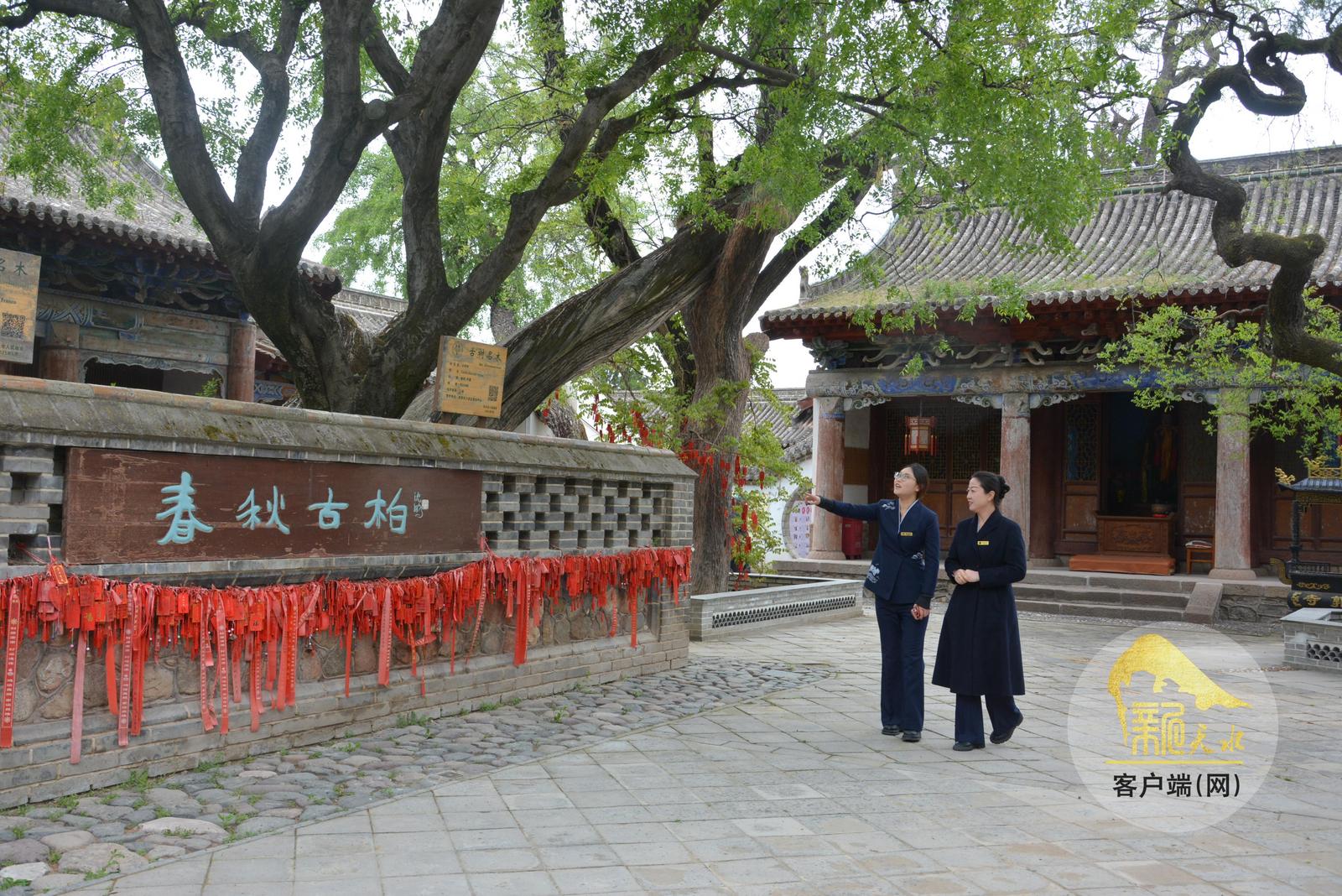 4月21日上午,记者在天水南山景区看到,景区中心广场周围宣传栏上的宣传内容已更换一新,南郭寺内多棵古树四周增设了树池。