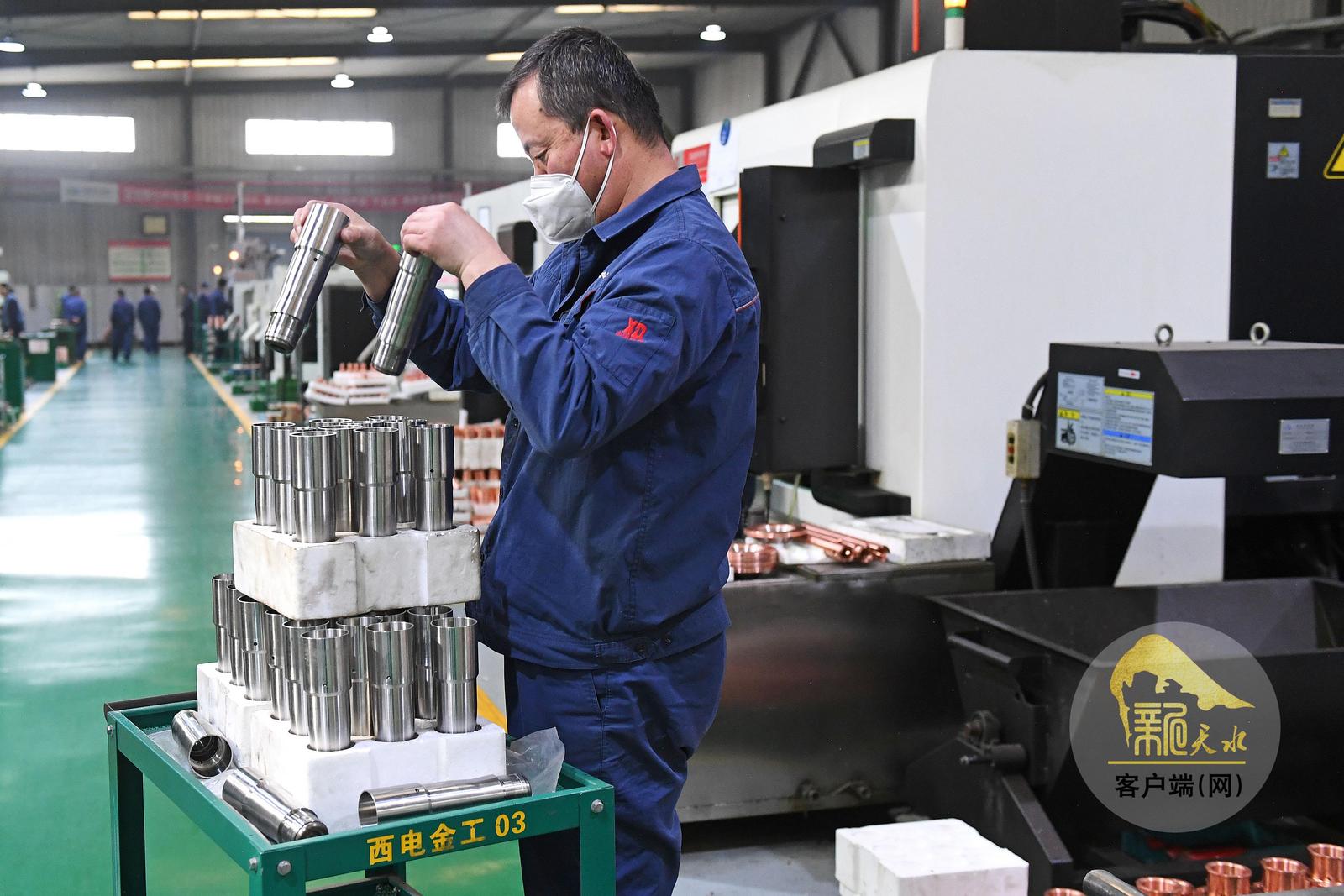 4月22日,天水西电长城合金有限公司的工人正在生产合金电工触头部件。