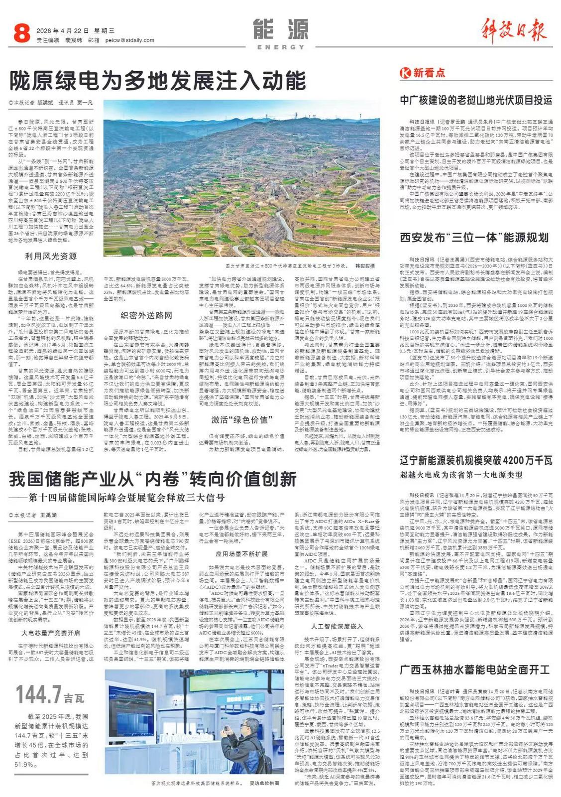 目前,甘肃已形成风电、光伏、光热装备制造3条完整产业链,正加快培育氢能、储能装备制造两个新增长点。