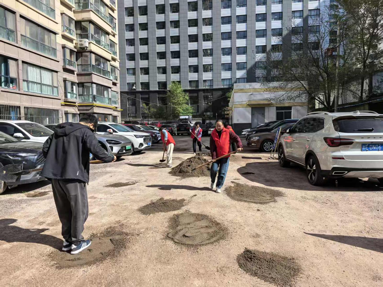 民有所呼,我有所行。针对居民反映集中、出行需求迫切的道路问题,社区第一时间统筹安排、快速行动,组织志愿者带上铁锹、扫把等工具,对小区坑洼破损路面开展集中平整回填作业。大家分工协作、干劲十足,对路面低洼坑槽进行砂土回填、摊铺平整、压实修整,认真清理路面杂物及浮土垃圾,一点点把凹凸不平的路面修整平整,全力改善路面通行条件。