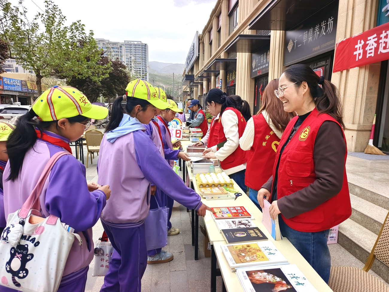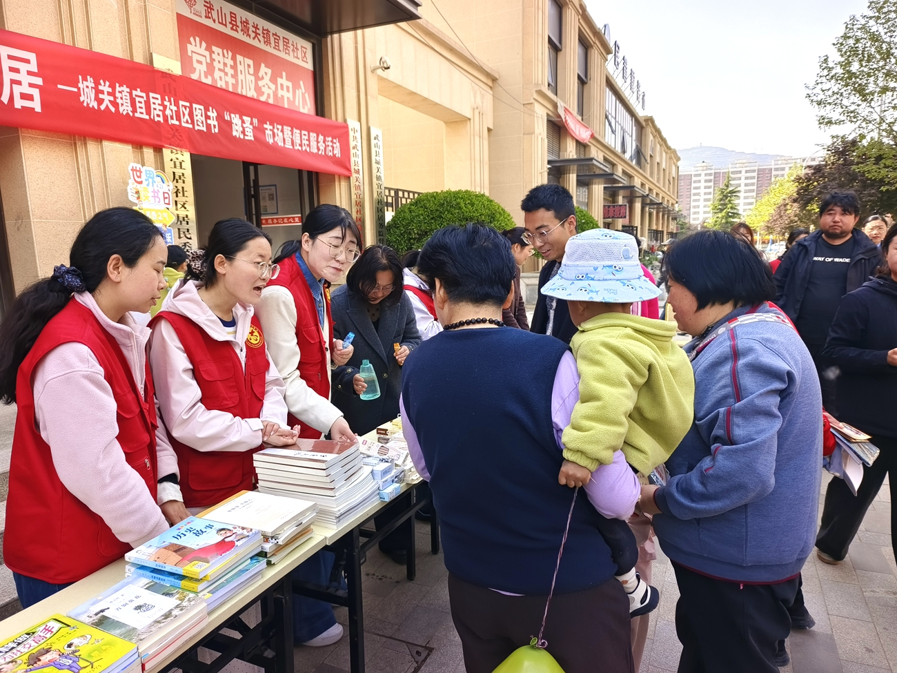 新天水讯 据武山县融媒体中心消息 在第31个“世界读书日”来临之际,为深入推进全民阅读走深走实,丰富辖区居民精神文化生活,切实把文化惠民、便民服务落到实处,4月22日,武山县城关镇宜居社区联合城关镇司法所、城关镇卫生院、县图书馆、甘肃陇浆源农业科技有限公司以及共建单位,共同举办“书香赶大集 文明润宜居”图书“跳蚤”市场暨便民服务主题活动,以书香聚人气、以服务暖民心,打造邻里共享、文明和谐的社区新场景。