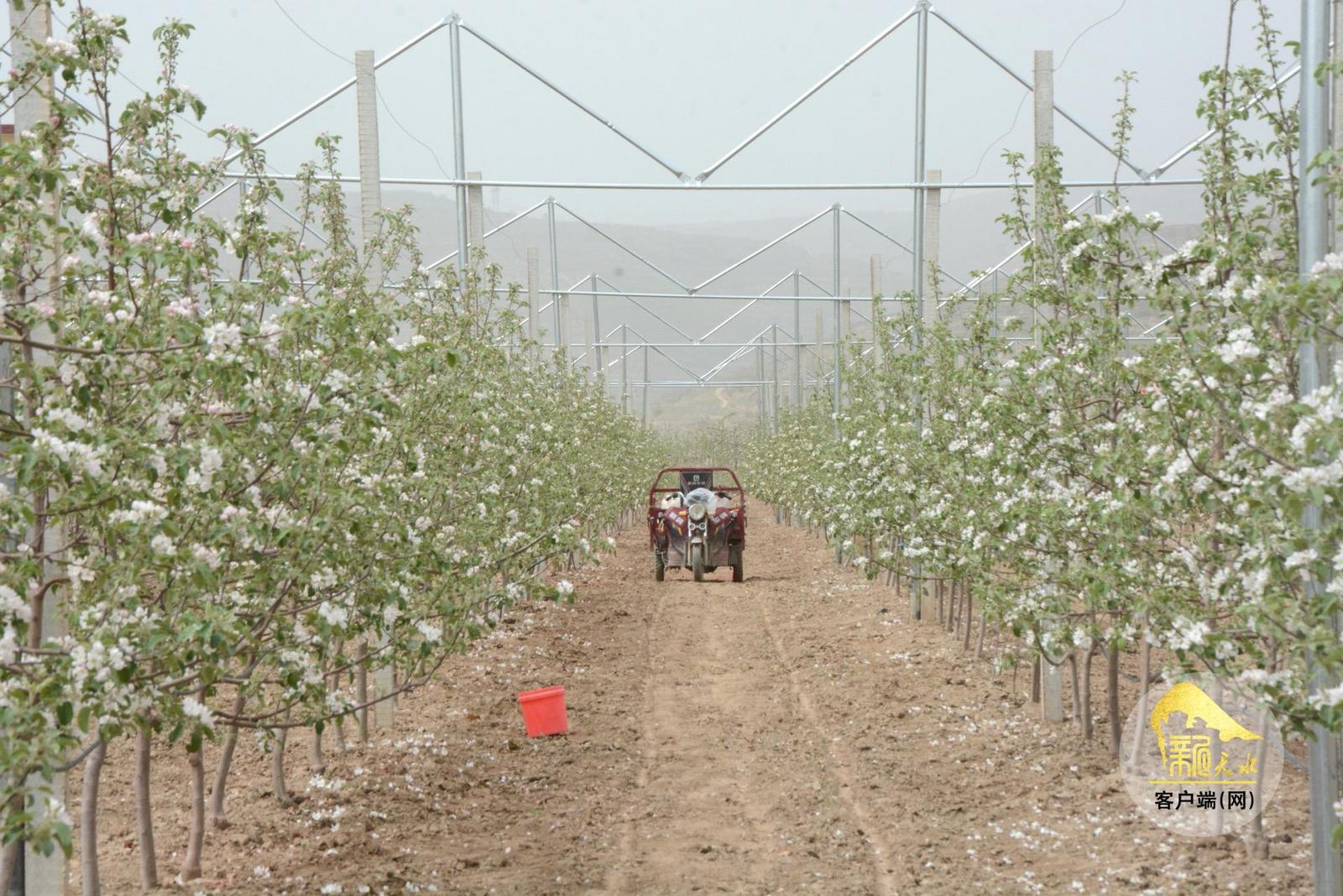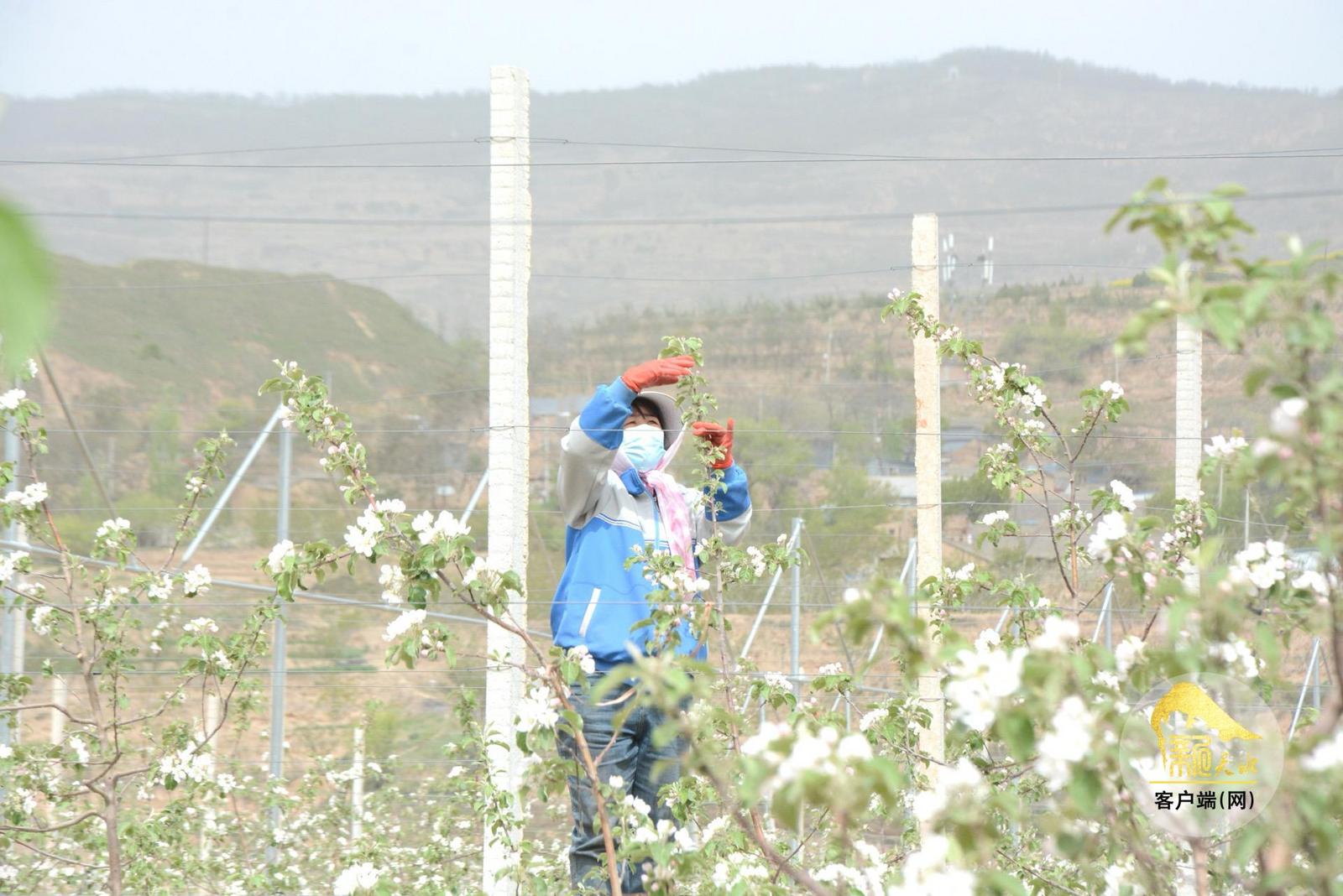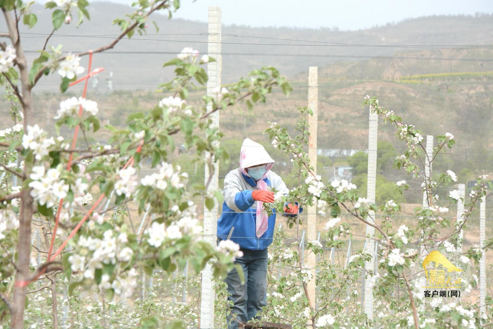 4月21日,走进甘谷县谢家湾乡自坪村苹果改造提升示范点,浓郁的花香扑面而来,缤纷的苹果花如云似雾缭绕在枝头,远远望去,犹如一片白色的花海。果农们正忙碌穿梭在果树间,抓紧农时,进行疏花工作,整个果园呈现出一派生机勃勃的繁忙景象。