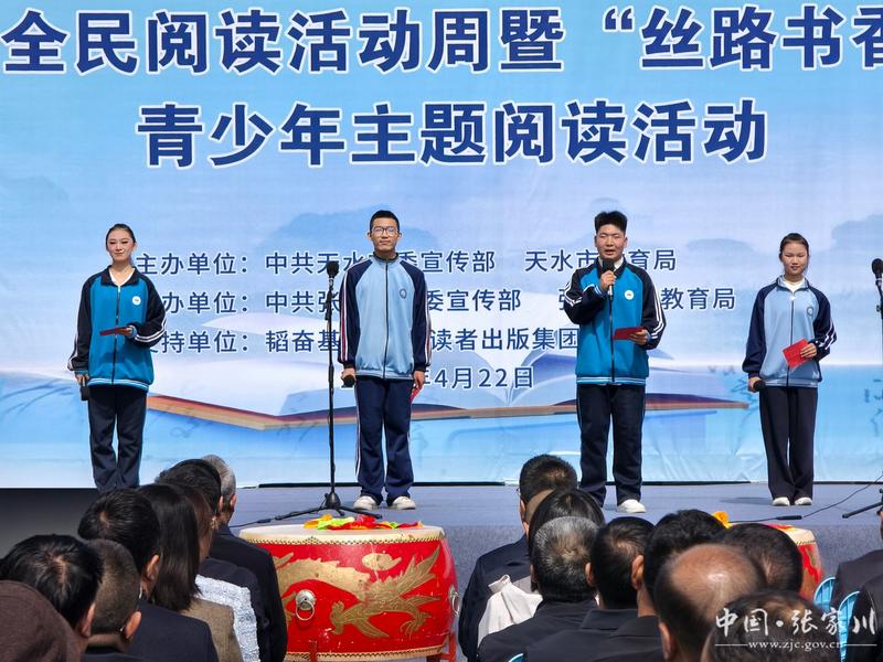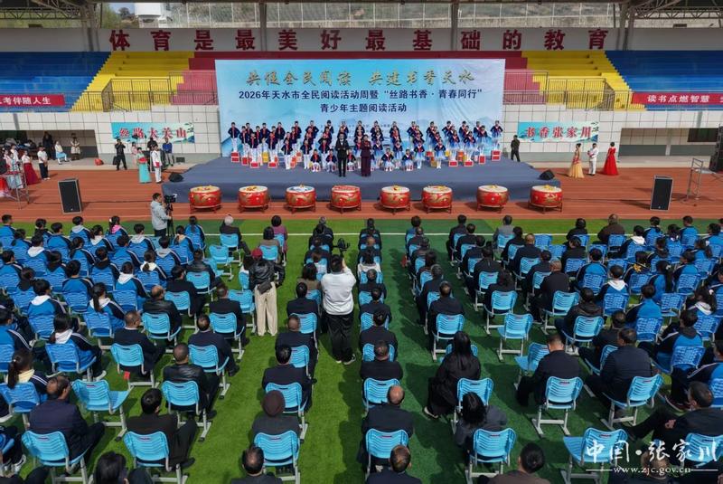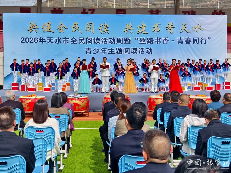 新天水讯 据张家川县融媒体中心消息 春和景明,书香致远。4月22日,在第31个世界读书日到来之际,2026年天水市全民阅读活动周暨“丝路书香•青春同行”青少年阅读主题活动在张家川县启幕。活动由中共天水市委宣传部、天水市教育局主办,中共张家川县委宣传部、张家川县教育局承办,读者出版集团、韬奋基金会支持。市委常委、宣传部部长王文东,市人大常委会副主任任佩光,市政协副主席焦继军出席活动。市政府副市长汪小娟主持,张家川县委书记何敬忠致辞。市直相关单位负责人,各县区宣传部部长参加活动。