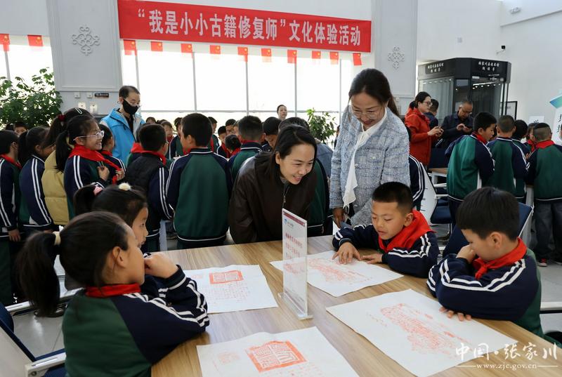 馆内同步开展非遗古籍体验活动,银龄志愿者开设《陇脉相传 银龄古籍讲堂》专题讲座,设置“小小古籍修复师”、雕版印刷、瓦当拓印、线装书装订等互动区域。“亲手体验古籍修复、线装书装订,才感受到传统文化的博大精深,这样的活动既有趣又有意义!”阿阳小学学生马晨兴奋地说。