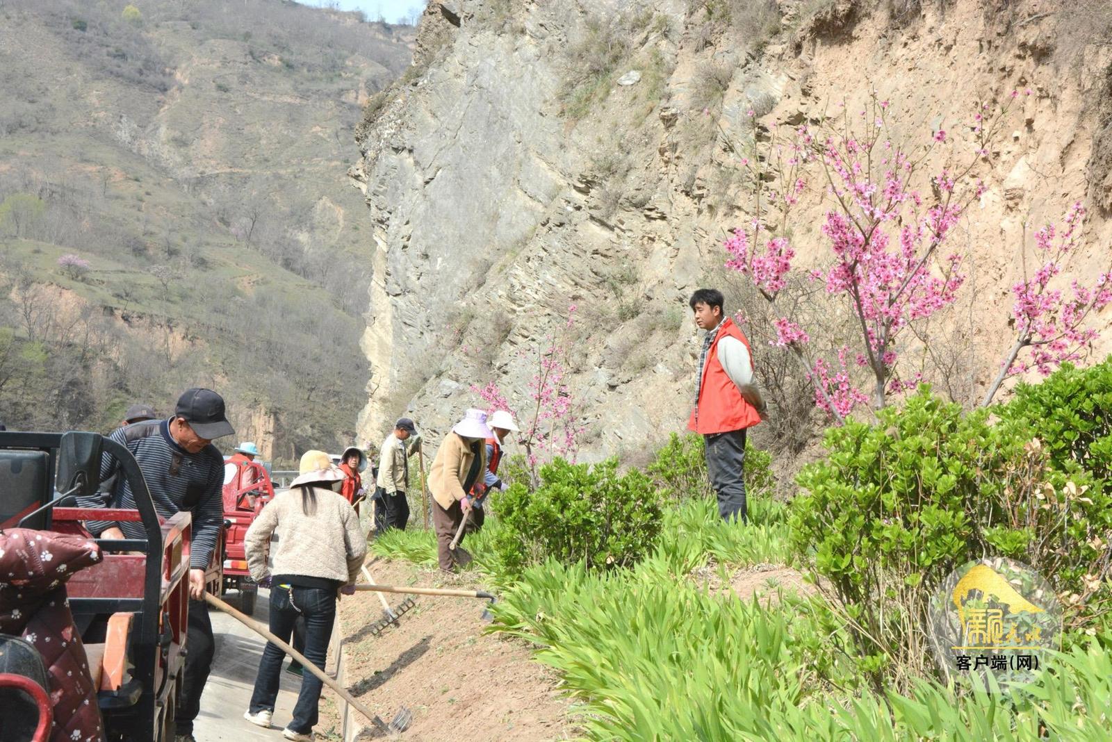 4月22日,记者在贾川乡稠金路看到,道路两侧绿化带栽植的一棵棵柳树、一株株月季、桃树等高低相间、错落有致,装扮出一条条美不胜收的风景路。干干部群众正忙着清扫路面、整修路肩、播种花籽,现场呈现出一派繁忙景象。
