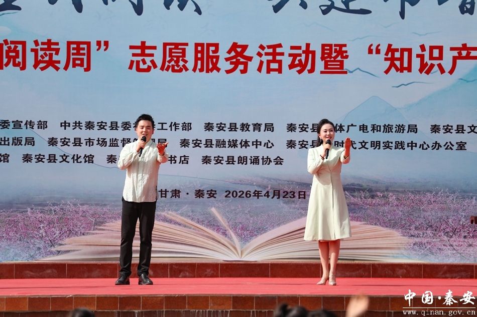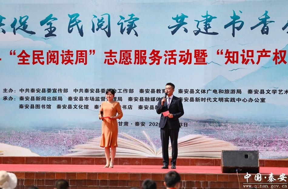 据秦安县融媒体中心消息 4月23日,2026年秦安县“全民阅读周”志愿服务活动暨“知识产权宣传周”主题活动在县兴国文化广场启动。