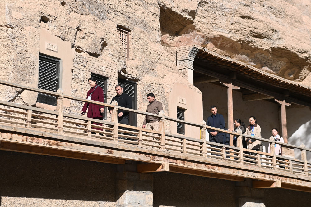 2025年10月12日,外国嘉宾在敦煌莫高窟参观。(范培珅 摄)