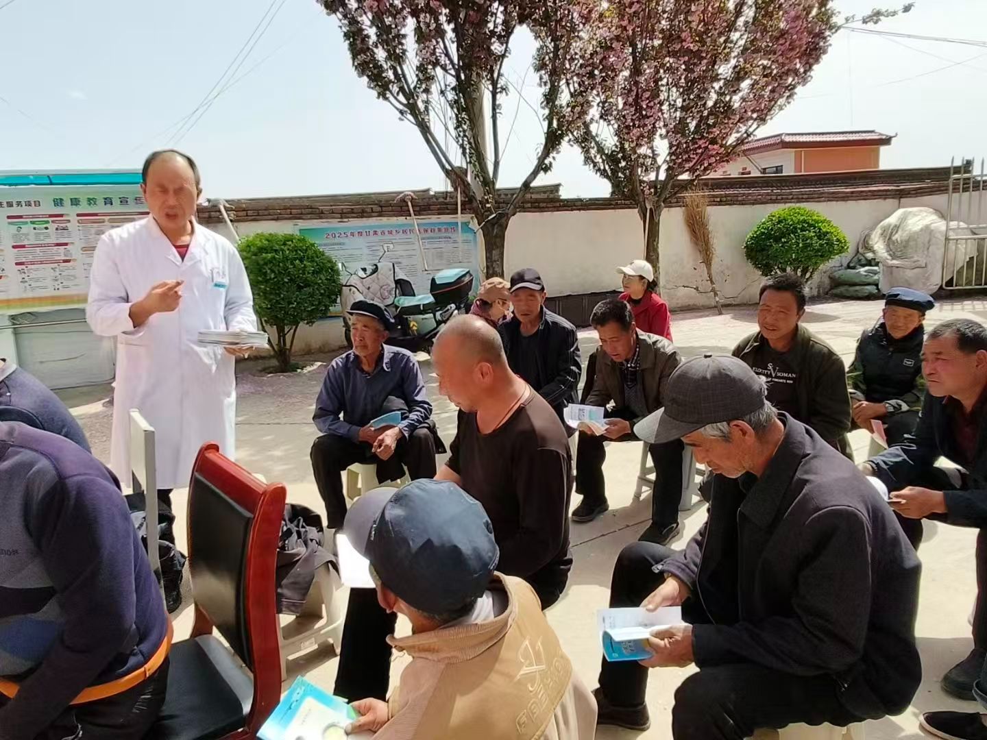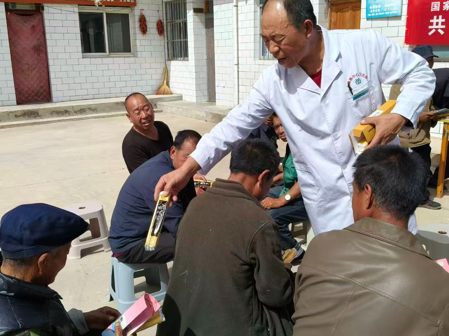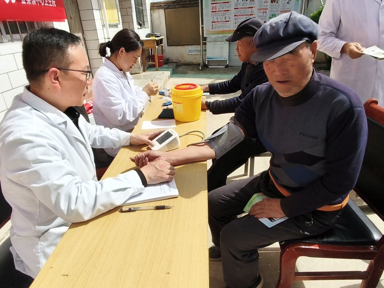现场诊疗服务,筑牢健康防线。活动现场,医护人员分工协作、各司其职,为群众提供一站式健康服务。现场群众络绎不绝,大家有序排队、积极咨询,医护人员耐心答疑、细致服务,现场氛围温馨热烈。医护人员免费为群众测量血压、血糖,细致排查慢性病风险,为高血压、糖尿病患者提供用药指导、生活方式干预等服务;结合全国爱国卫生月主题,向群众讲解环境卫生整治、病媒生物防制、健康生活方式养成等知识,引导群众养成良好卫生习惯,共建健康家园;同时围绕全国预防接种宣传日主题,讲解疫苗接种的重要性、儿童及成人疫苗接种知识、常见问题答疑,引导群众主动参与疫苗接种,筑牢免疫屏障;结合“共建健康城镇,共筑健康防线”主题,开展国家基本公共卫生服务项目科普宣传,讲解老年人健康管理、慢性病随访、妇幼保健等惠民政策;免费为群众开展中医保健服务,发放艾条,讲解艾灸养生知识与操作要点,推广中医保健服务,提升群众自我管理健康的能力。