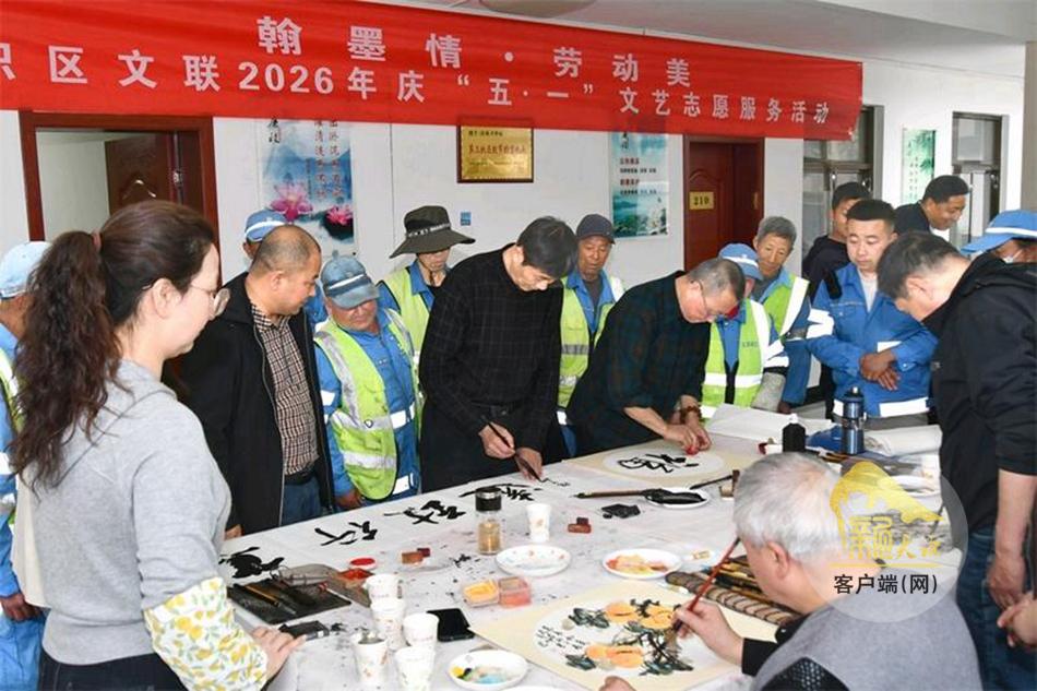 新天水讯 4月27日,麦积区文联、区文化馆组织文艺志愿者走进麦积区环卫中心,开展“翰墨情·劳动美”庆“五一”新时代文明实践文艺志愿服务活动,以书画艺术的独特方式致敬环卫工作者。