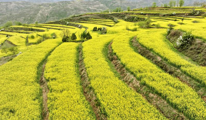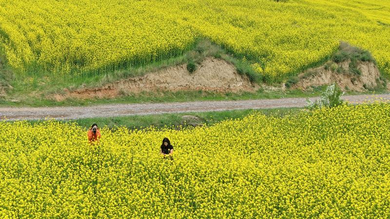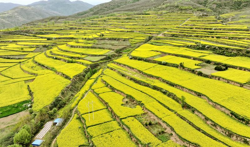 新天水讯 据武山县融媒体中心消息 春天最后一场花事,正在这里盛放。如果你还没准备好和春告别,就来武山县四门镇吧——这里的油菜花,正在山野梯田间泼洒出最热烈的金黄。风一吹,便是漫山遍野的金色诗行。