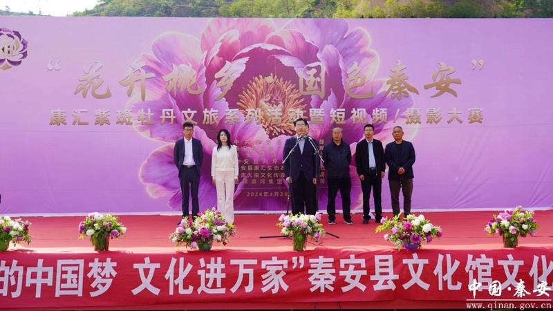 新天水讯 据秦安县融媒体中心消息 春风送暖,国色飘香。4月28日,秦安县2026年“花开桃乡·国色秦安”康汇紫斑牡丹文旅周暨短视频大赛活动启幕,正式拉开了“五一”假期暨康汇紫斑牡丹文旅周的序幕。